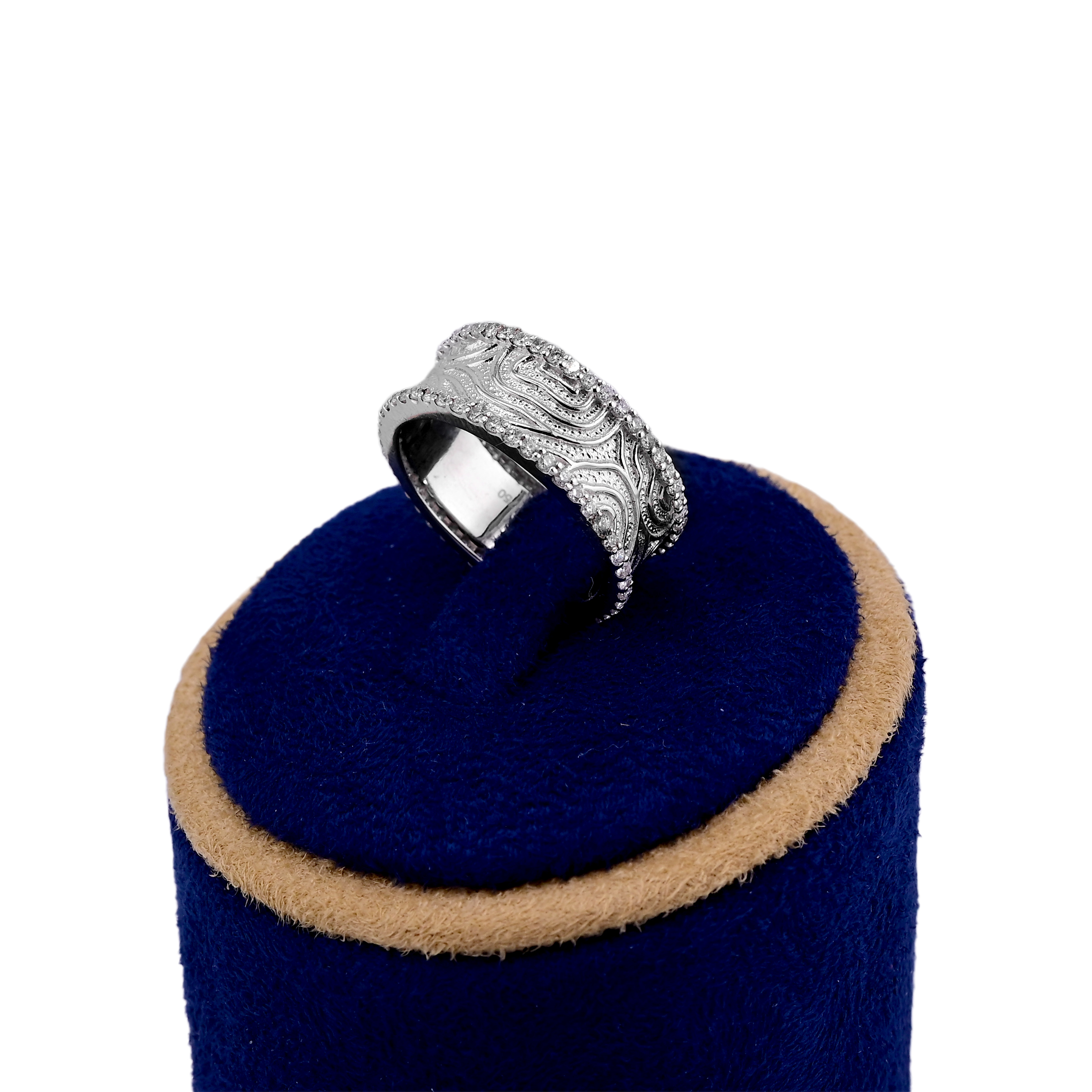 This 18k White Gold Piece boasts a stunning display of diamonds artistically channel and prong set in graduated-size clusters. Gift this to any loved one on a wedding, birthday or holiday, a timeless style that is unique and extraordinary.
